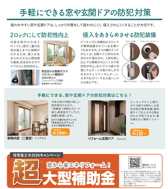 住宅省エネ2026キャンペーンなどの大型補助金を活用して賢くリフォームができますので、