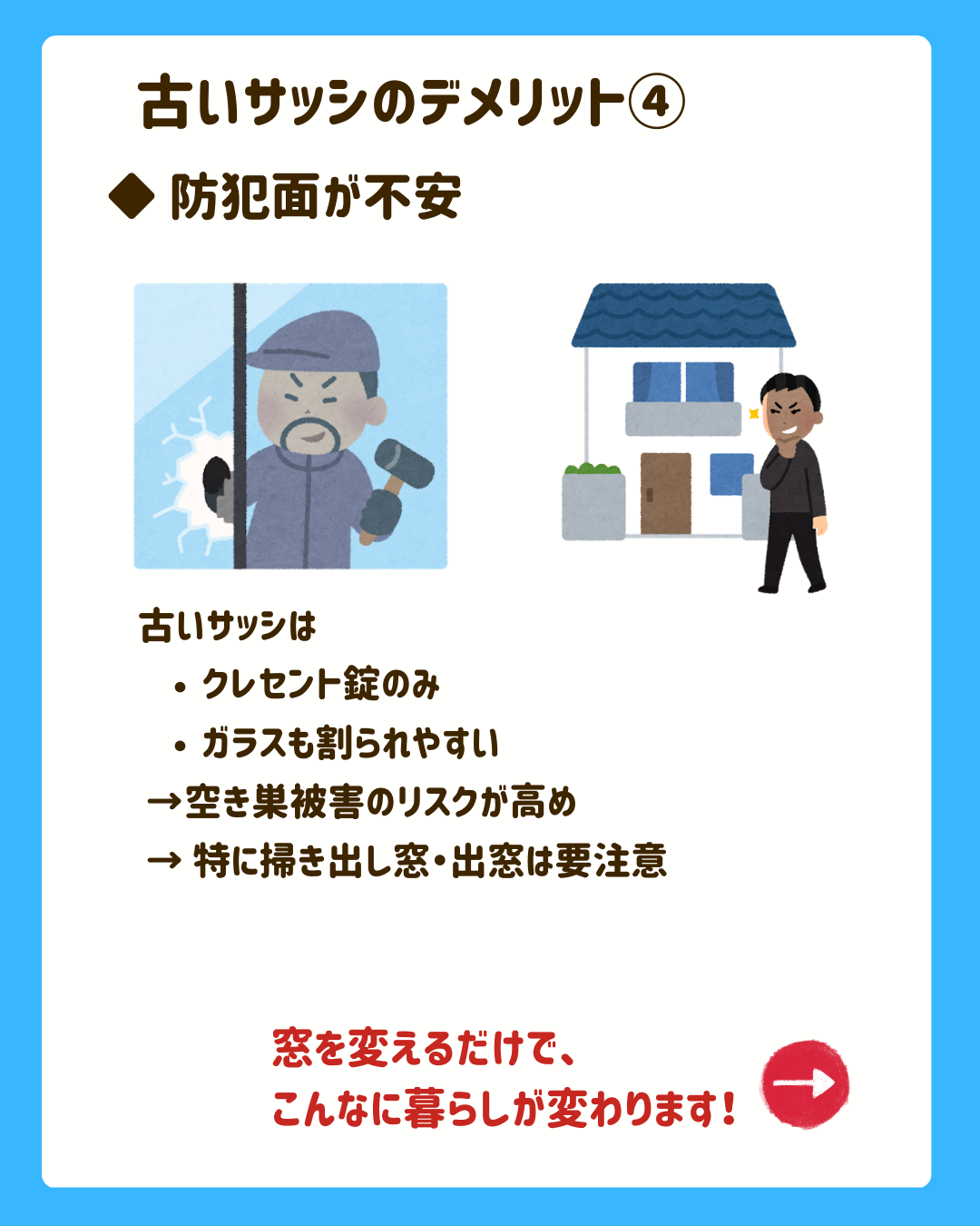 ・特に狙われやすい掃き出し窓や出窓は要注意