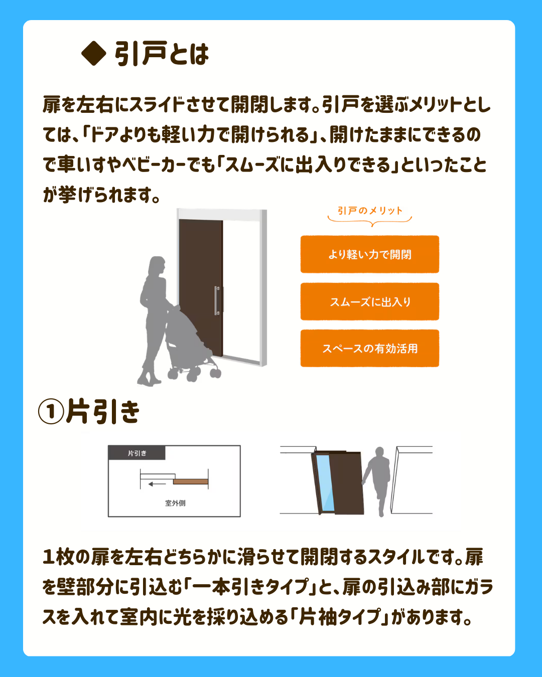 前回のドア編に続き、今回は「引戸(ひきど)」の種類についてご紹介します。