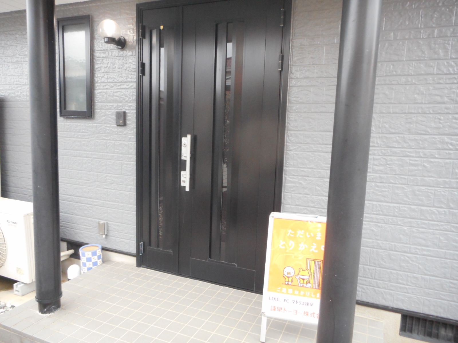 使用した商品 リシェント玄関ドア3 断熱仕様k4ランマ無手動親子L M17型 色:トリノパイン(BC)